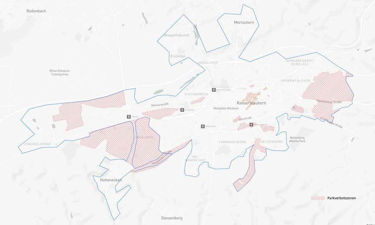 Die Städte haben Zonen definiert, in denen ein Miet-Ende und somit das Abstellen der E-Tretroller untersagt ist. Diese Zonen sind in den folgenden Plänen markiert: