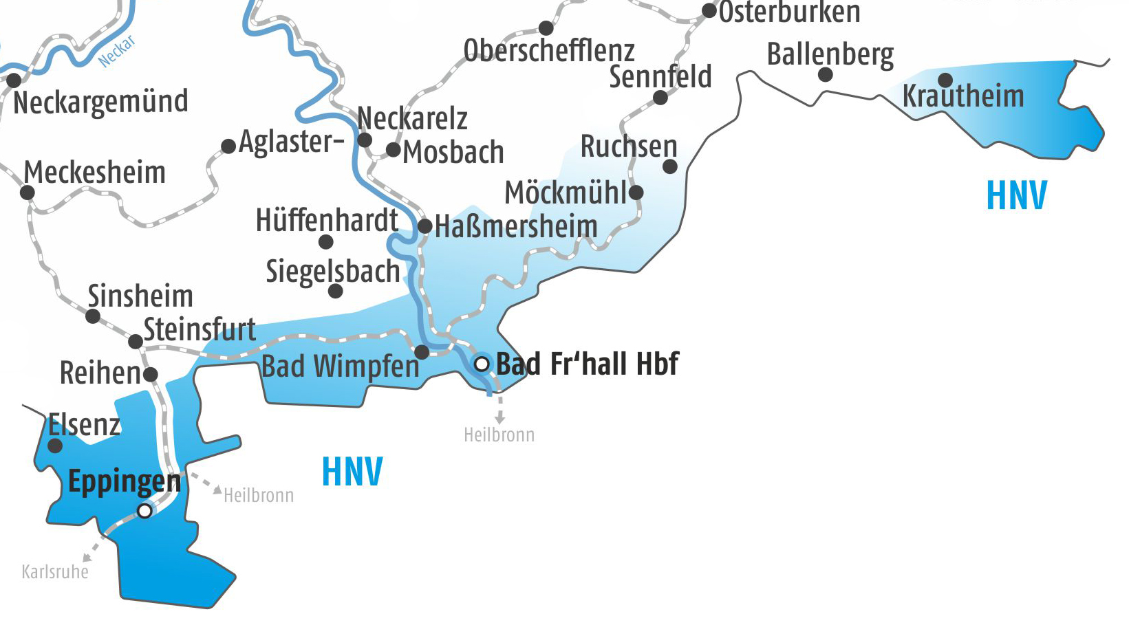 Übergang zum Heilbronner-Hohenloher-Haller Nahverkehr GmbH (HNV)